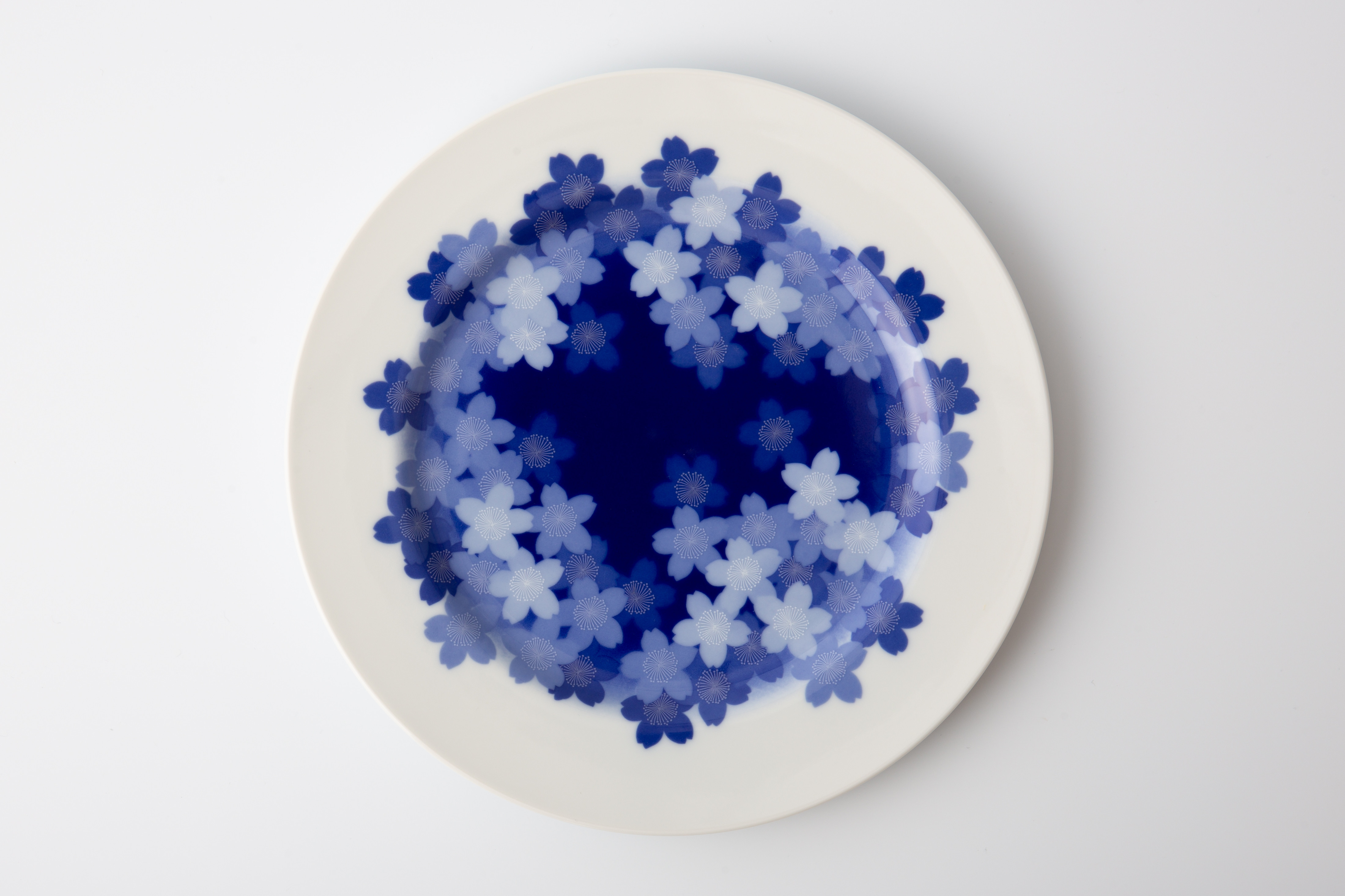 爛漫と咲き誇り幾重にも重なり合う桜の絨毯を香蘭社の鮮やかなコバルトブルーと白磁の美しいコントラストで表現しています。