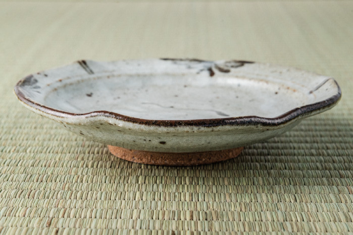こちらの輪花五寸皿は名前の通り花が描かれており、ほんのりとかかった白釉薬が優しい雰囲気のお皿です。