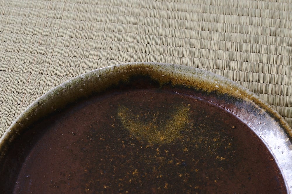 ずっしりとした重みがあり、ところどころ光沢のあるこちらの平皿は重厚感たっぷり。