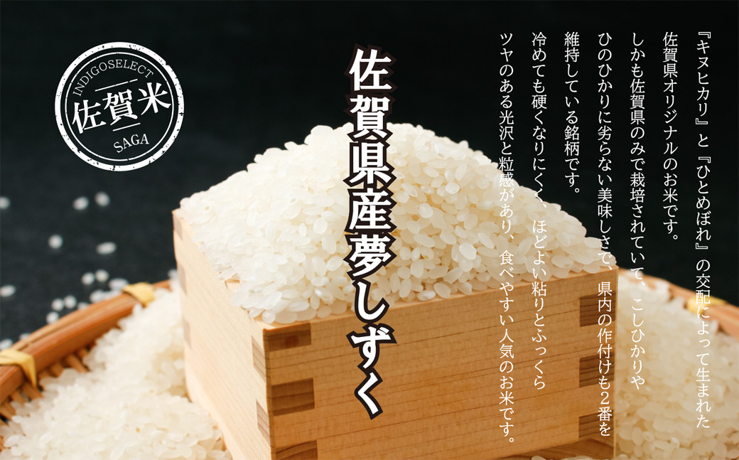 【佐賀県産夢しずく】提供:株式会社INDIGO(佐賀市)/精米:かわさき米屋(佐賀市)