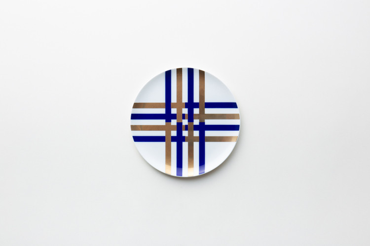 直線を通して美の概念を追求する佐藤可士和氏のアートワークシリーズ「LINES」の絵付けを施したプレート。