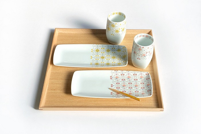 色鍋島の伝統文様をモダンにアレンジした「くだもの」シリーズ。