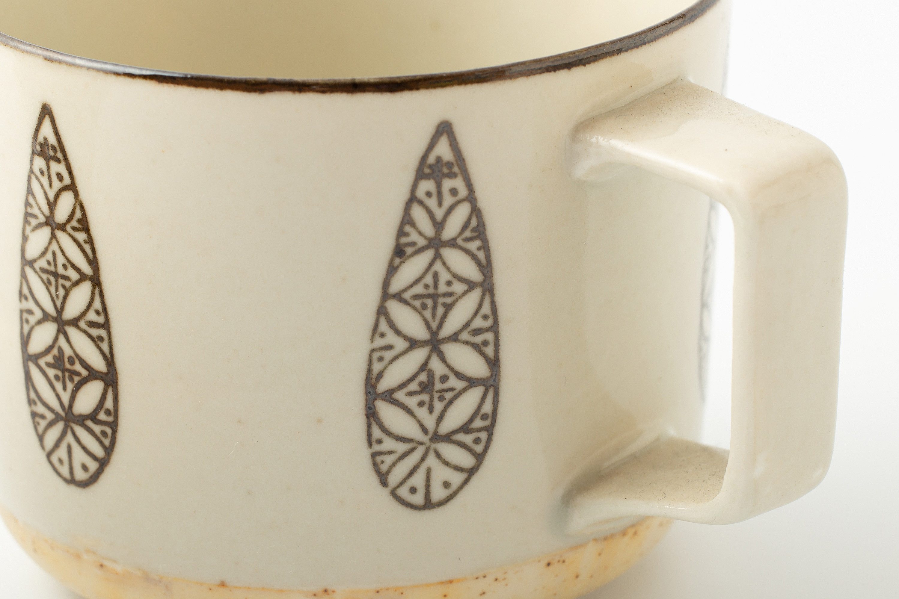 hibiは、自然と人、焼きものの特性と手仕事によって生ずる「ばらつき」を良しとします。中でも、kuppiシリーズは古来からの技法である印判手を使用し、真っ白ではなくベージュ、つるつるではなく半マット、新しくも懐かしい雰囲気。磁器の強度や軽さを持ち、陶器のような表情豊かな器のシリーズです。