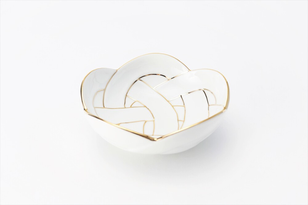 水引きの結びをモチーフにした縁起のよいデザイン。 艶やかな表面が上品で綺麗です。 【セット】有田焼 梅むすび小鉢・銘々皿 4点セット 田清窯/丸兄商社