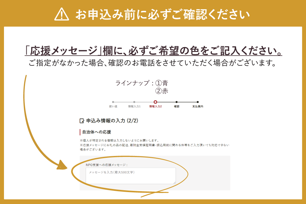 ◆お申込み時、「応援メッセージ」欄に、ご希望のカラーをご記入ください。
