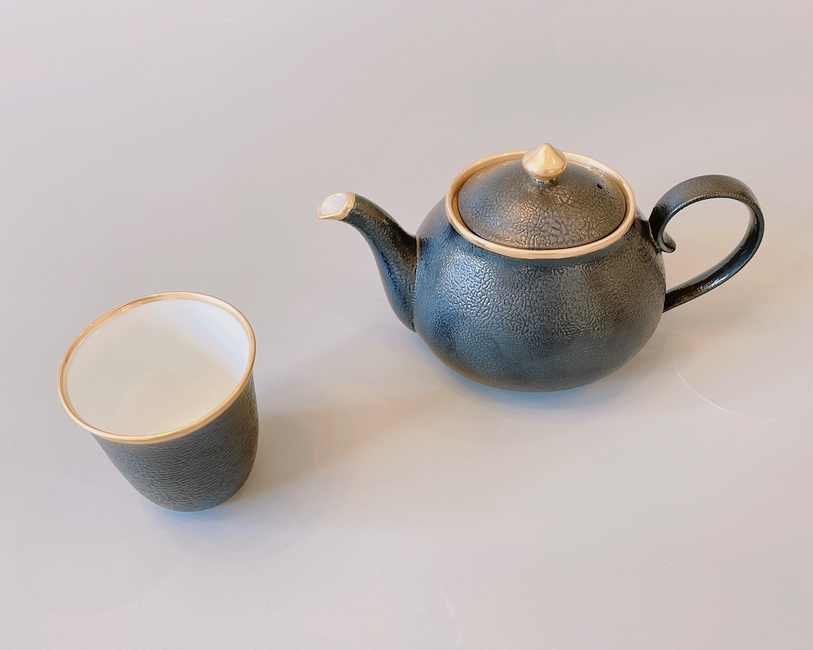 飽くなき探求心が生みだした、伊万里鍋島焼の新たな可能性とポテンシャル 【セット】【伊万里焼】キュイールデザイン 楕円ポット1&反煎茶1