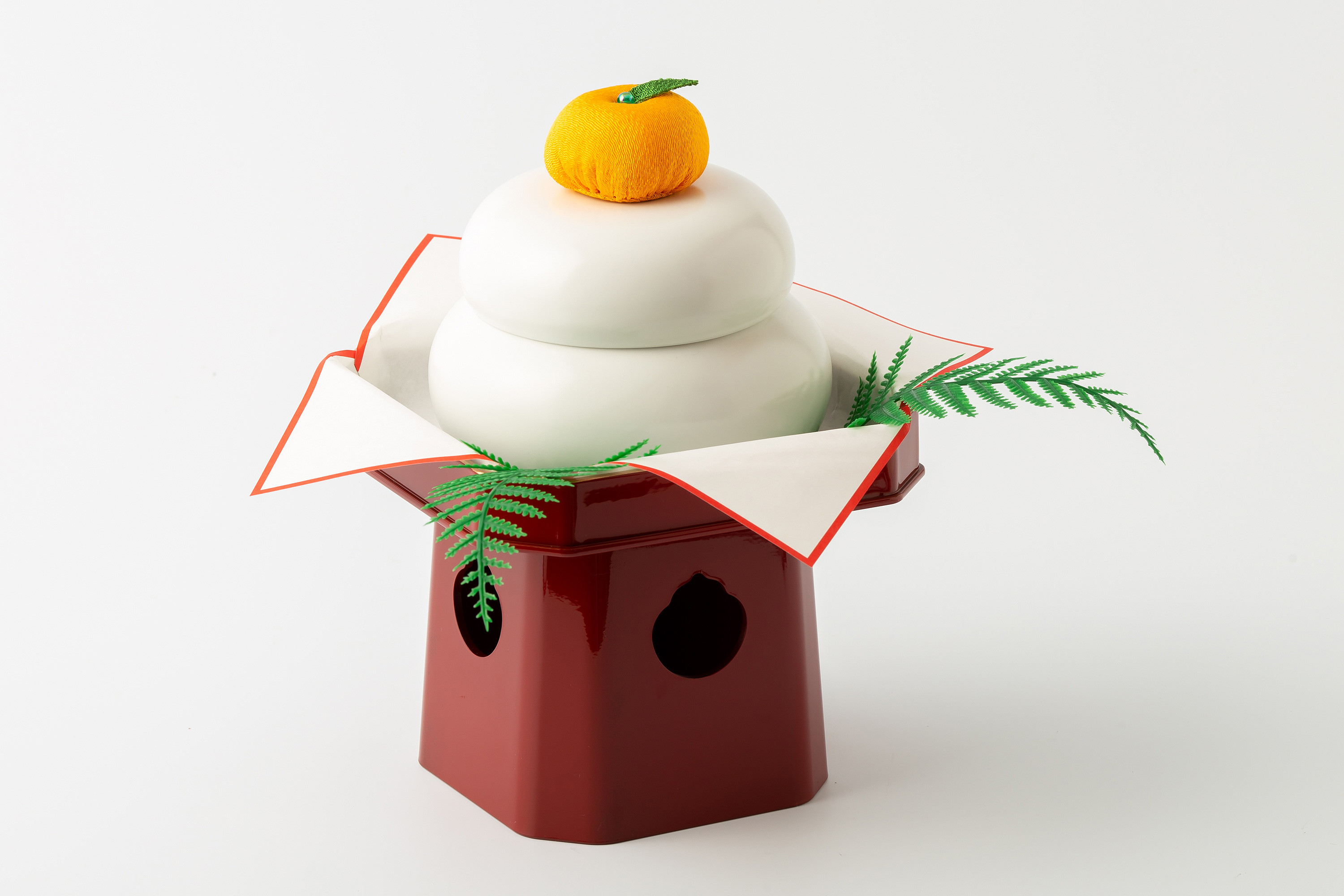 | 容量 | 鏡餅(有田焼)1個、橙(布製)1個、三宝(ABS樹脂)1組、四方紅(仙貨紙)1枚、うらじろ(プラスチック製)1個 鏡餅:径13.5cm×高10cm 橙:直径6cm×高3.5cm 三宝:16.5cm×16.5×高14cm |