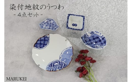 NEW 【セット】【有田焼】伯父山窯 染付地紋のうつわ 4点(雪輪皿…