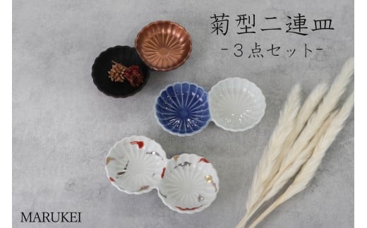 NEW 【セット】【有田焼】菊型二連皿 3点セット(和彩金銀彩(マッ…