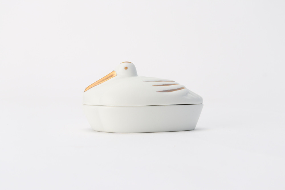 ハレの日にぴったりな縁起物の鶴と亀。しっとりとしたマット釉と金で美しく。 【セット】有田焼 瑞峯窯 白マット鶴・亀蓋物 丸兄商社