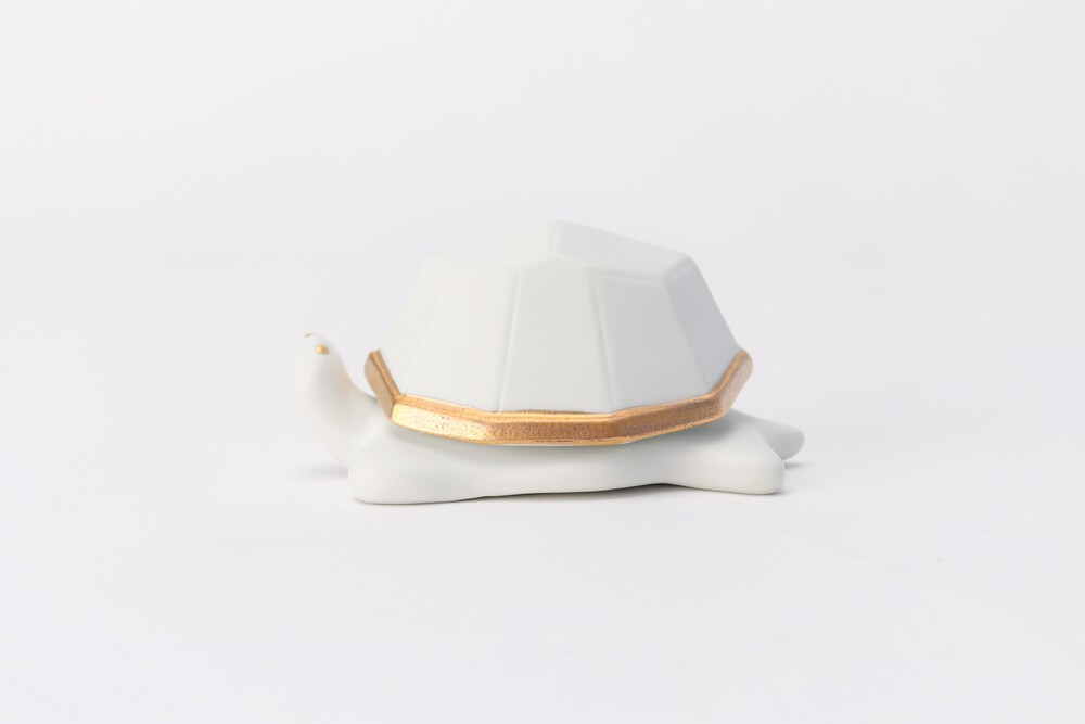 ハレの日にぴったりな縁起物の鶴と亀。しっとりとしたマット釉と金で美しく。