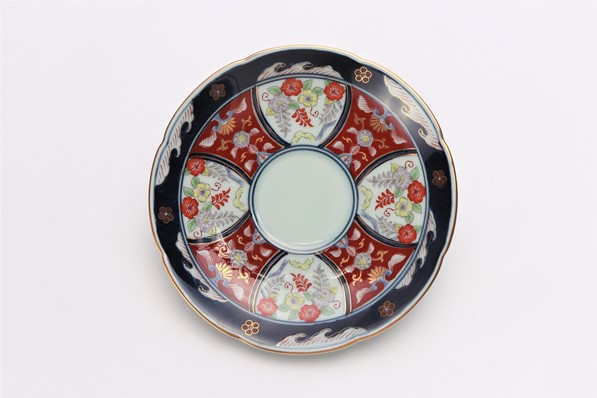 さらに古くから縁起の良いと言われている藤の花の絵柄に、染付と赤絵の金・赤・緑などの色を使い繊細で華やかなデザインになっています。