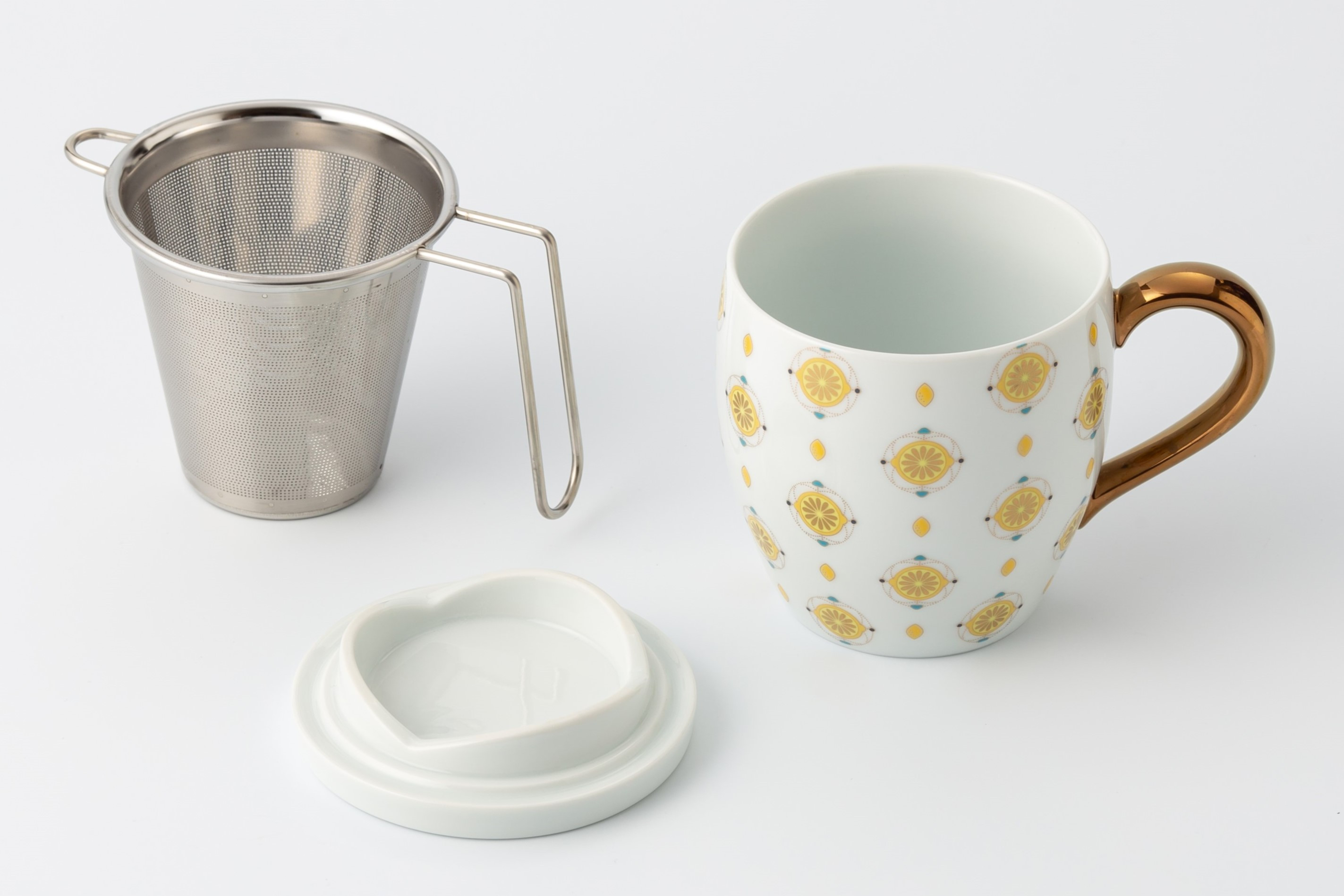 有田焼マグカップ(れもん) フタ・茶こし付 賞美堂本店