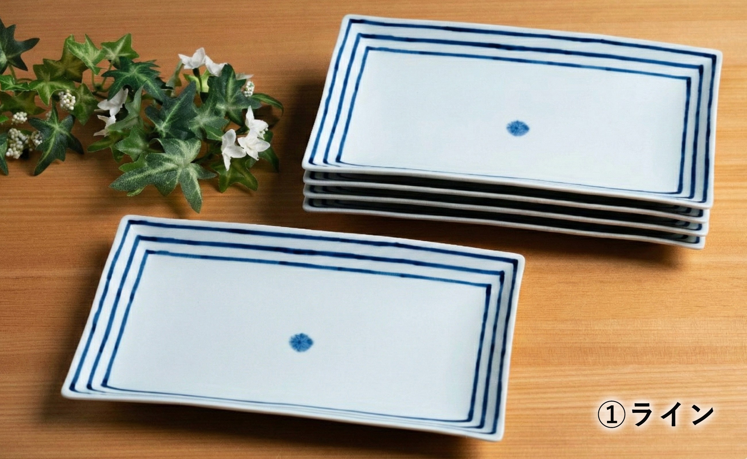 チョイス限定 魚料理から和洋メニューまで幅広く使える焼皿5枚セット/角皿 刺身皿 食器 有田焼 【カネアオ】有田焼 皓洋窯 焼皿 5枚セット(※ライン/ななめ剣先紋から柄をお選びください。)
