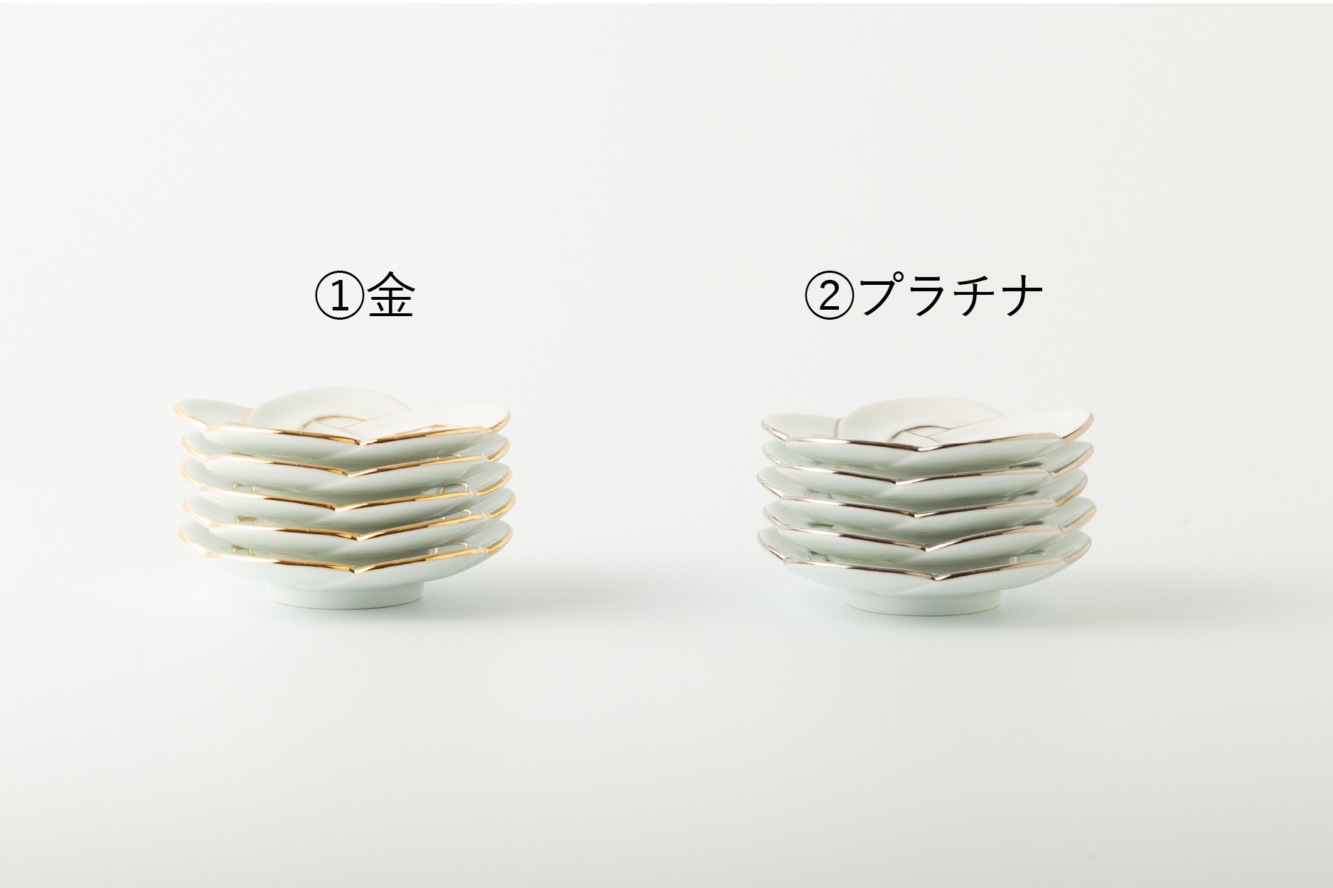 【カネアオ】有田焼 四つ葉結び銘々皿 5枚セット(金/プラチナ ※…