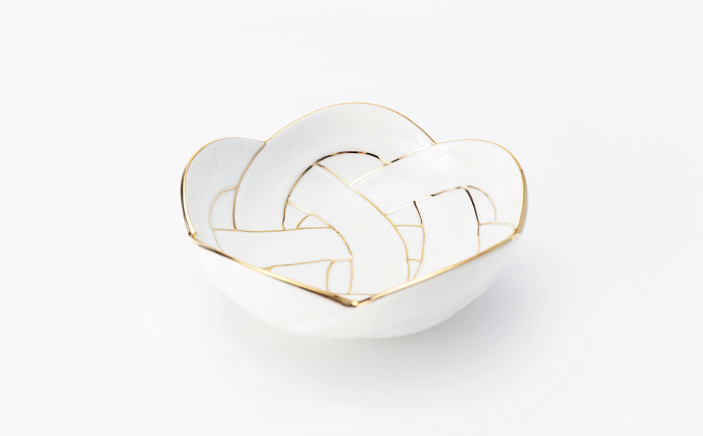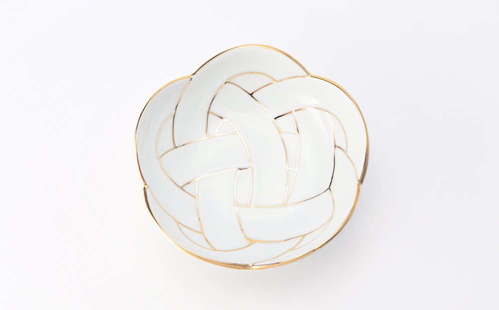 水引きの結びをモチーフにした縁起のよいデザインです。 【有田焼】田清窯 金線梅むすび小鉢 5個セット 丸兄商社