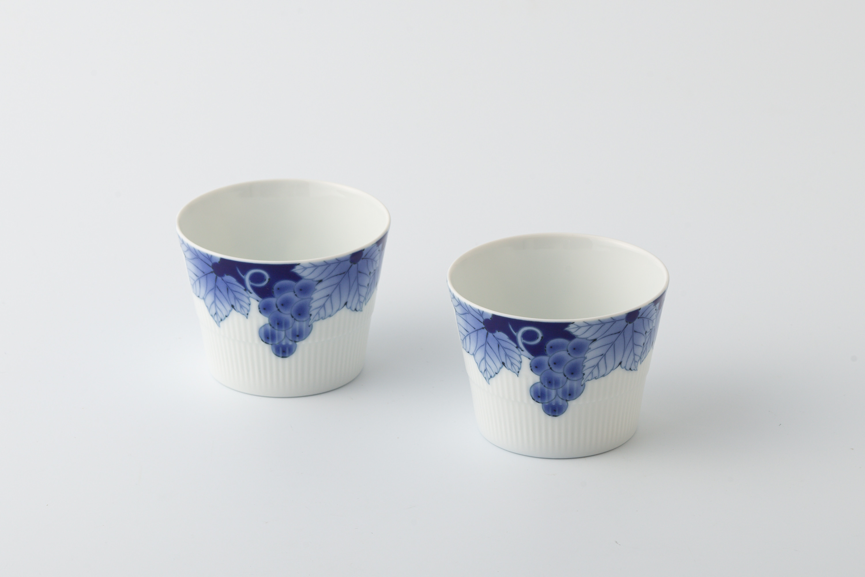 香蘭社の定番レリーフシリーズのハーベストグレープ。「ぶどう」のモチーフをルリ色のアクセントで引き立てた爽やかなデザインです。