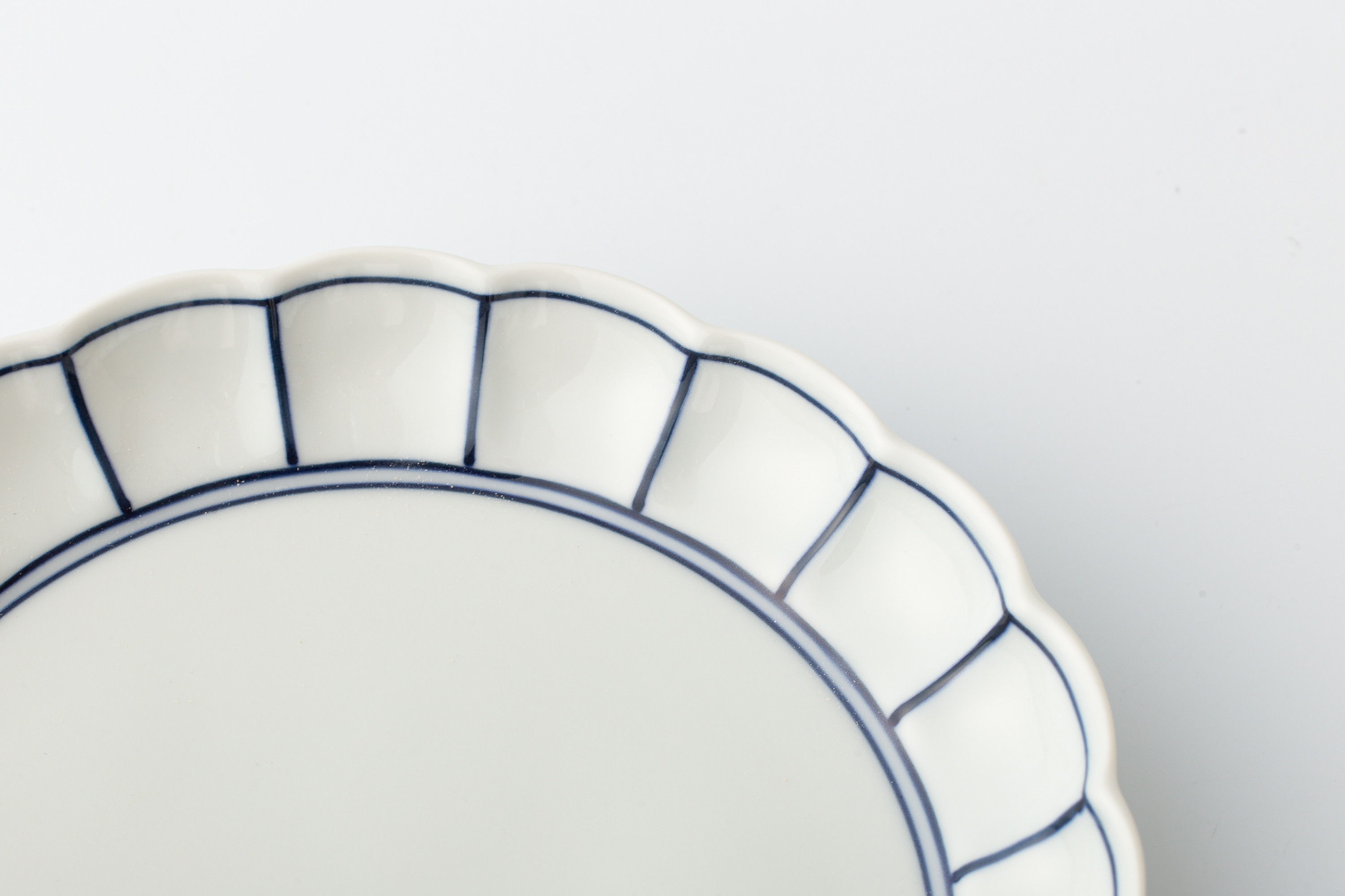 フリルのような菊割の渕が可愛らしいプレートは、パンやケーキはもちろん、取り皿にも使いやすい大きさです。