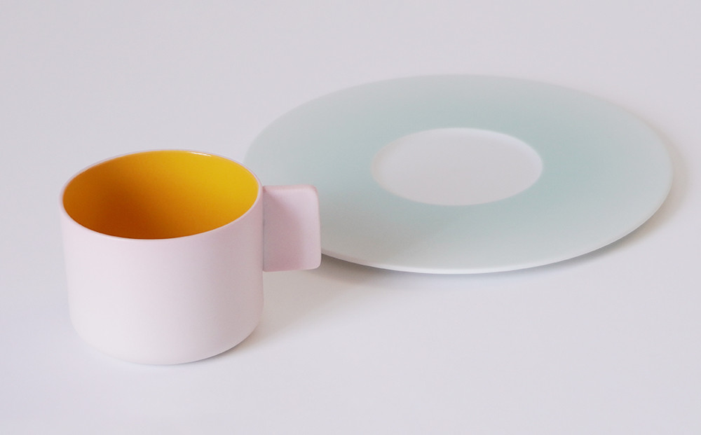 日本の伝統色である、淡く、果敢ない色の層を重ねながら、陶磁器という文脈の中で再解釈したテーブルウェアのシリーズは、現代的で非常に機能性の高い形の中に、有田の特有の色遣いが反映されています。