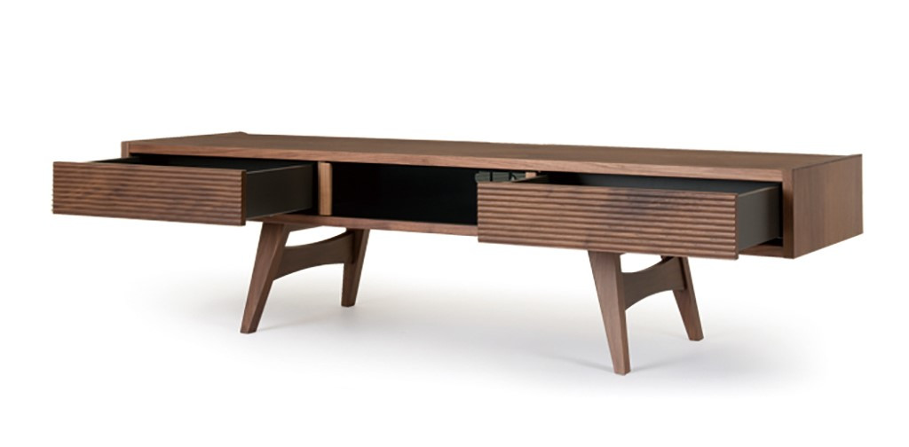 ブラックガラスや細身で高さがある脚など、シャープでスタイリッシュなデザインです。 ポンテ 155 TVスタンド ウォールナット