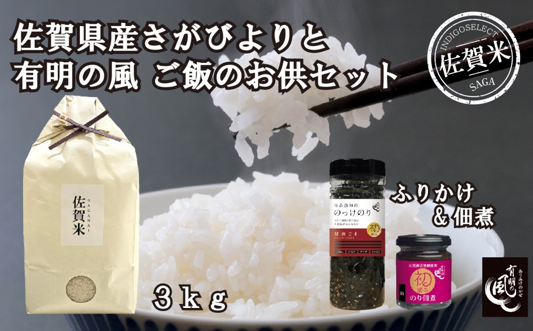 【セット】佐賀県産さがびより3kgと『有明の風』ご飯のお供セット