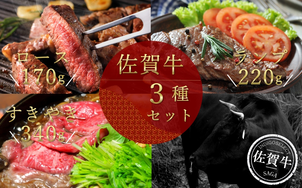 【セット】佐賀牛3種(ロースステーキ/ランプステーキ/すき焼き用)