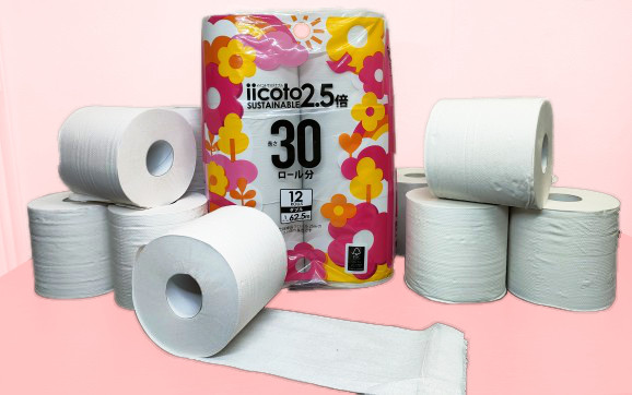 コトブキ製紙株式会社が製造するトイレットペーパーiicoto2.5倍は従来品仕様の2.5倍の長さ62.5mです。