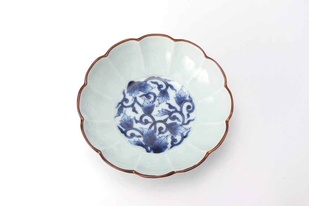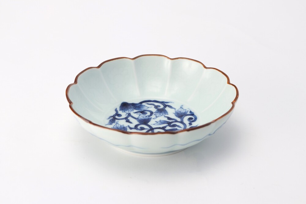 染付の濃淡で表現された菊唐草がパッと目をひく器です。