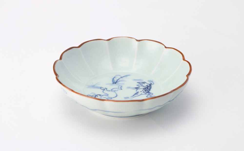 『鳥獣戯画』の猿・兎・カエルの三匹が戯れるシーンが描かれた焼き物です。 【セット】【有田焼】宝泉窯 古染鳥獣戯画 4点セット(小鉢、楕円皿) 丸兄商社