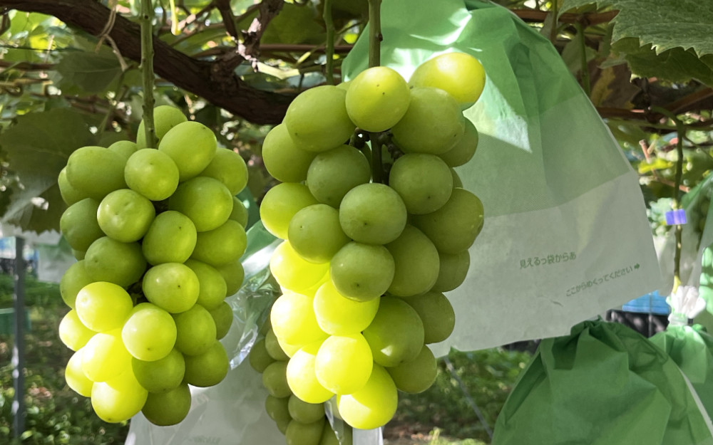 大地の恵みを吸収し、ハウスの中で1房ずつ管理した自慢の『シャインマスカット』です。