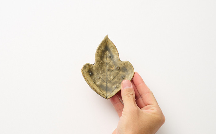 今回の作品も家の近くの木の葉を型取り、そのまま器にした作品です。