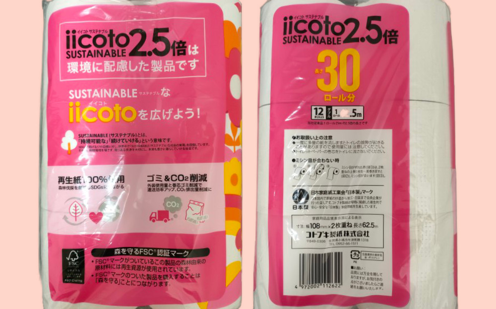 コトブキ製紙株式会社が製造するトイレットペーパーiicoto2.5倍は従来品仕様の2.5倍の長さ62.5mです。