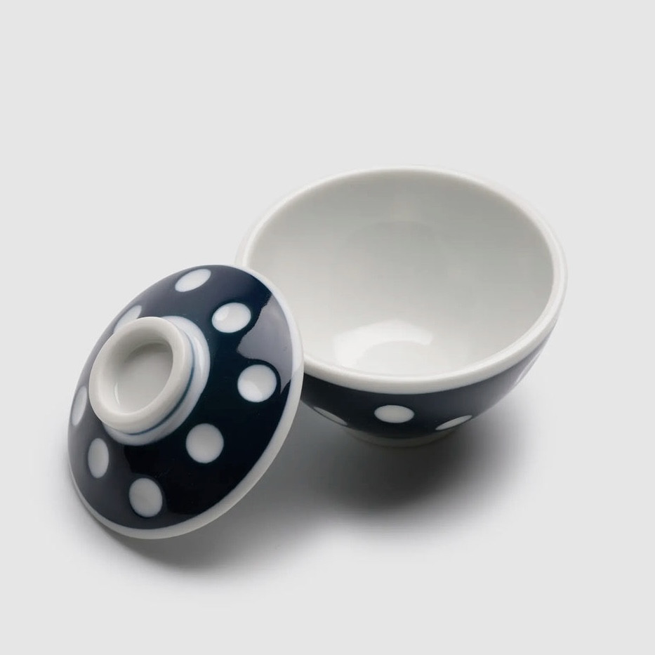 遊び心ある水玉模様の豆ちゃわんと香ばしい最中。/有田焼 和菓子 ギフト つぶあん