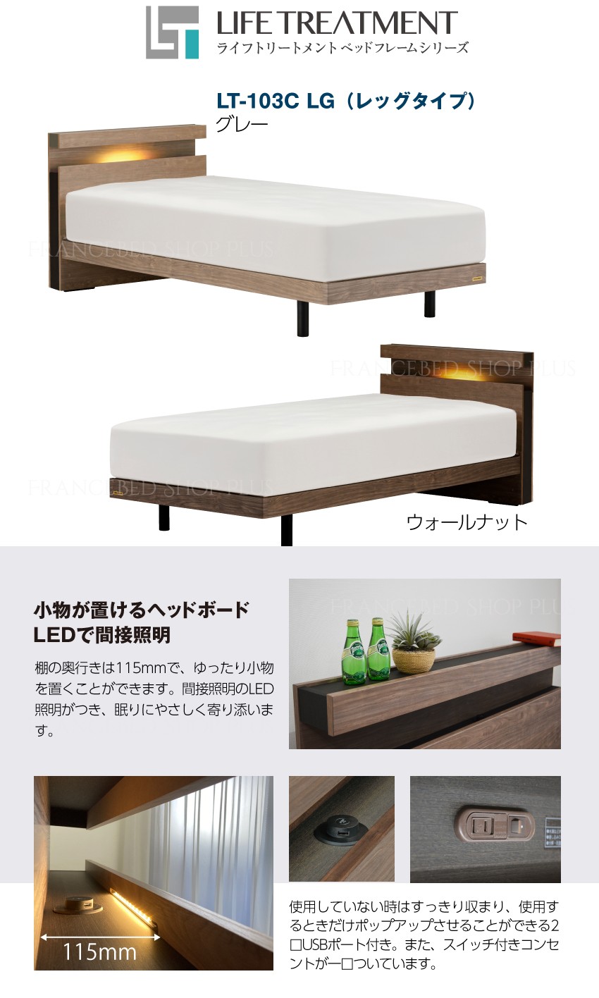 シングルサイズのベッドフレームとマットレスの2点セット 【セット】フランスベッド ライフトリ-トメント LT-103C (脚付きタイプ)シングル【※色をお選びください】(ベッドフレーム1・マットレス1)