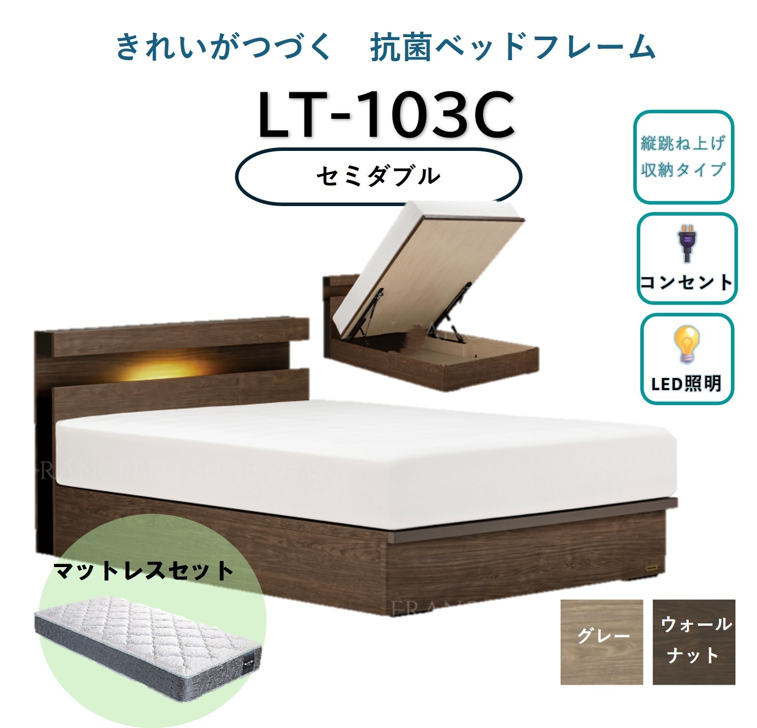 セミダブルサイズのベッドフレームとマットレスの2点セット 【セット】フランスベッド ライフトリートメント LT-103C (跳ね上げ収納タイプ)セミダブル【※色をお選びください】(ベッドフレーム1・マットレス1)
