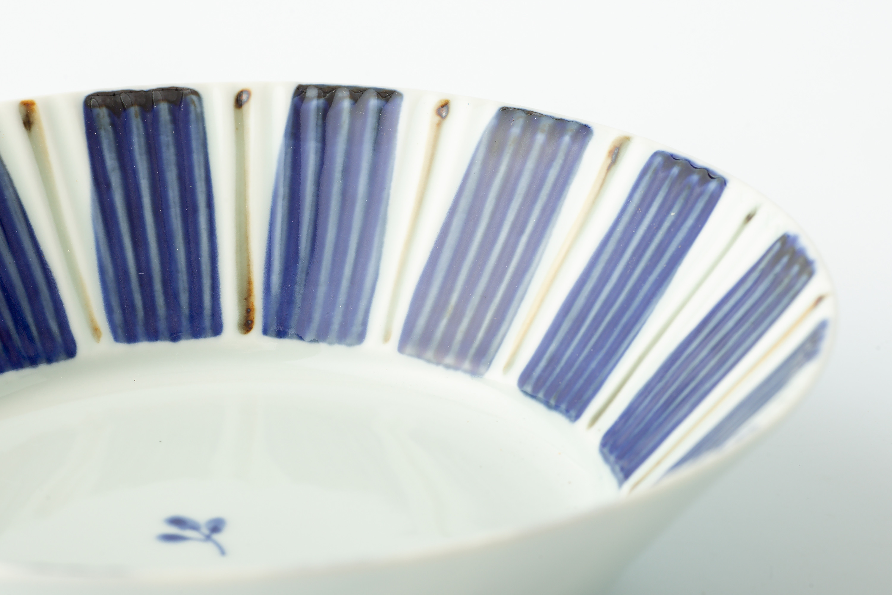 チョイス限定 和洋どちらにも合う万能反ボウル2個セット。/カレー皿 パスタ皿 中鉢 有田焼 【カネアオ】有田焼 呉須錆十草しのぎ反ボウル 2個セット 皓洋窯