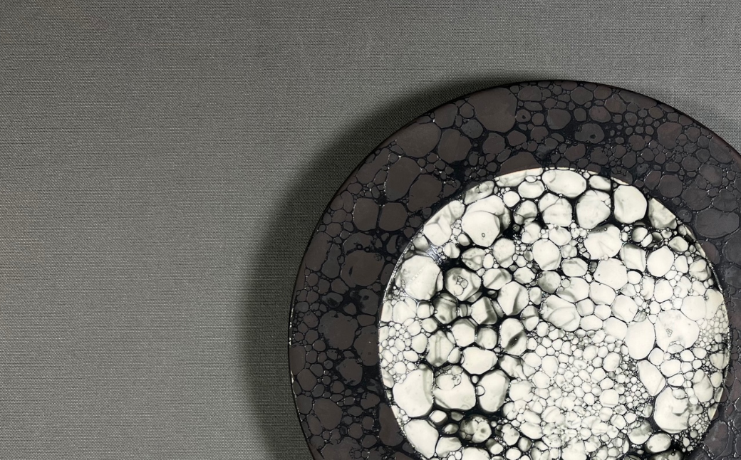 | 容量 | 皿 リムプレート ブラック Φ21.5×h2.5cm 模様は、一つ一つ異なる表情をしています。 模様の違いや個体差も作品の個性として、一期一会を感じていただけましたら有難いです。 ※1点1点模様が異なり、お選びいただくことはできませんが、責任をもってお届けいたします。 |