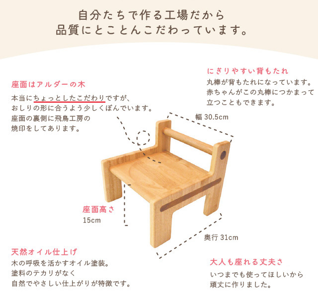 | 容量 | チェア:1個 (サイズ:幅31cm×奥行30.5cm×背もたれまでの高さ27.5cm、座面までの高さ15cm、重量:1907g) |