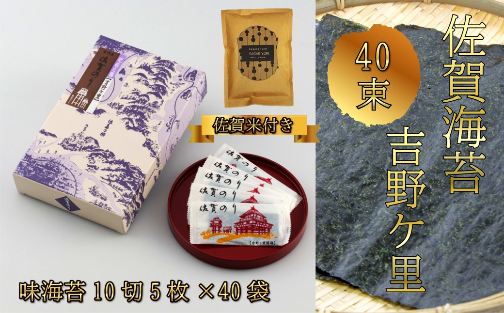 【セット】サン海苔 吉野ヶ里40束(味付のり)【佐賀米付き】(ST-02)