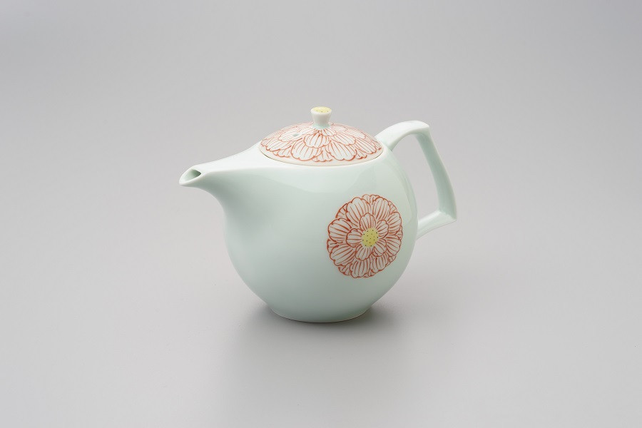 有田焼 渓山窯 錦牡丹ポット(小):告示第5条第3号:長崎県波佐見町で成形した生地を仕入れ、佐賀県有田町内の窯元で、素焼き、下絵付け、施釉、焼成、上絵付けを行い、相応の付加価値が生じているもの