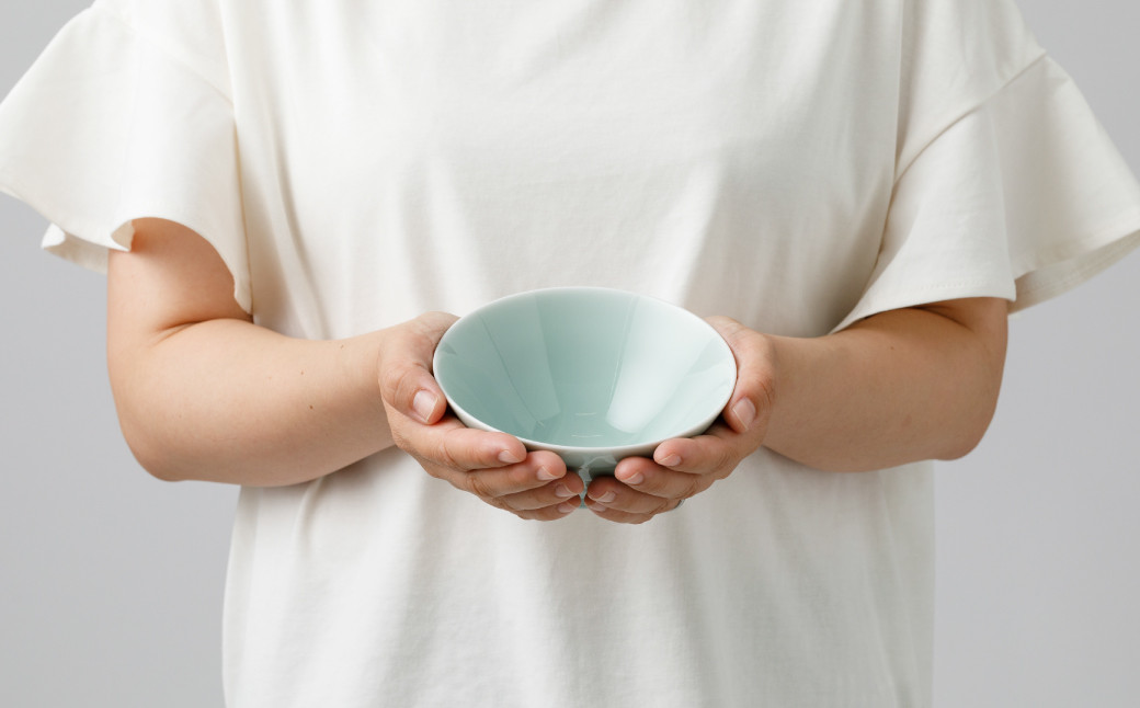 青磁と白磁のバランスが美しい小鉢。サラダ、お浸しなど多様にお使いください。