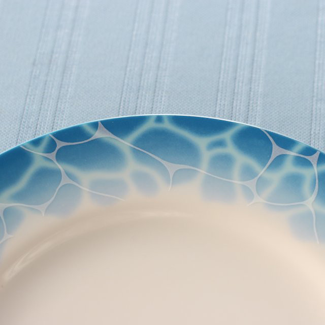 ケーキ皿のリムの部分に水面の柄をデザインしました。夏にぴったりのデザインです。