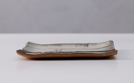 唐津焼/鏡山窯/線刻粉引角皿(大)
