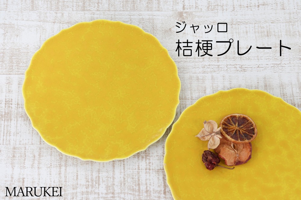 鮮やかな黄色が目を引く、スタイリッシュなプレートです。 【有田焼】金善窯 ジャッロ(黄) 21cm桔梗プレート 2枚セット 丸兄商社