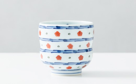 チョイス限定 有田の三大窯元「源右衛門窯」の代名詞でもある梅の花と染付の濃みが入った湯呑み 【源右衛門窯】有田焼/染錦赤梅小紋割湯呑み