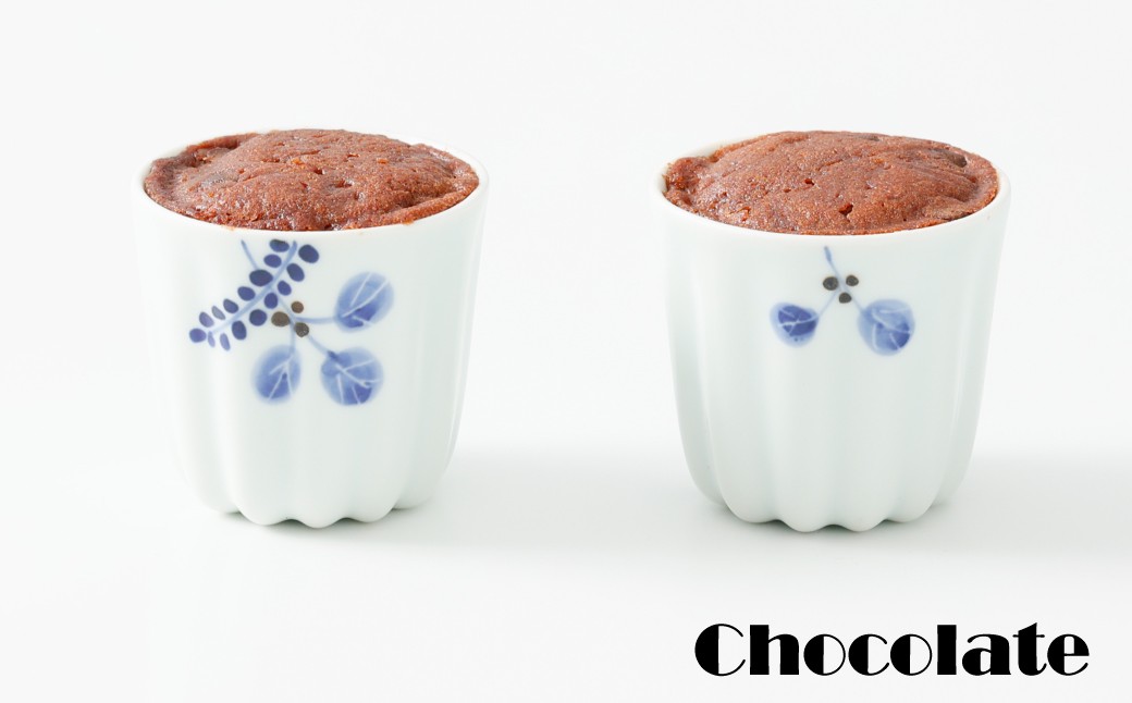 ミニカヌレ型の有田焼に入ったカップケーキ プレゼントにもおすすめです 【杏慕樹】菓子/有田器菓(カップケーキ) チョコ・栗・抹茶 6個セット