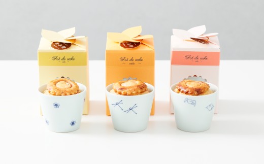 フランス菓子店が贈る、有田焼で味わう上質なスイーツ 【杏慕樹】菓子/ポ ドケイク プレーン・金柑・フランボワーズ 6個セット (赤3・青3)
