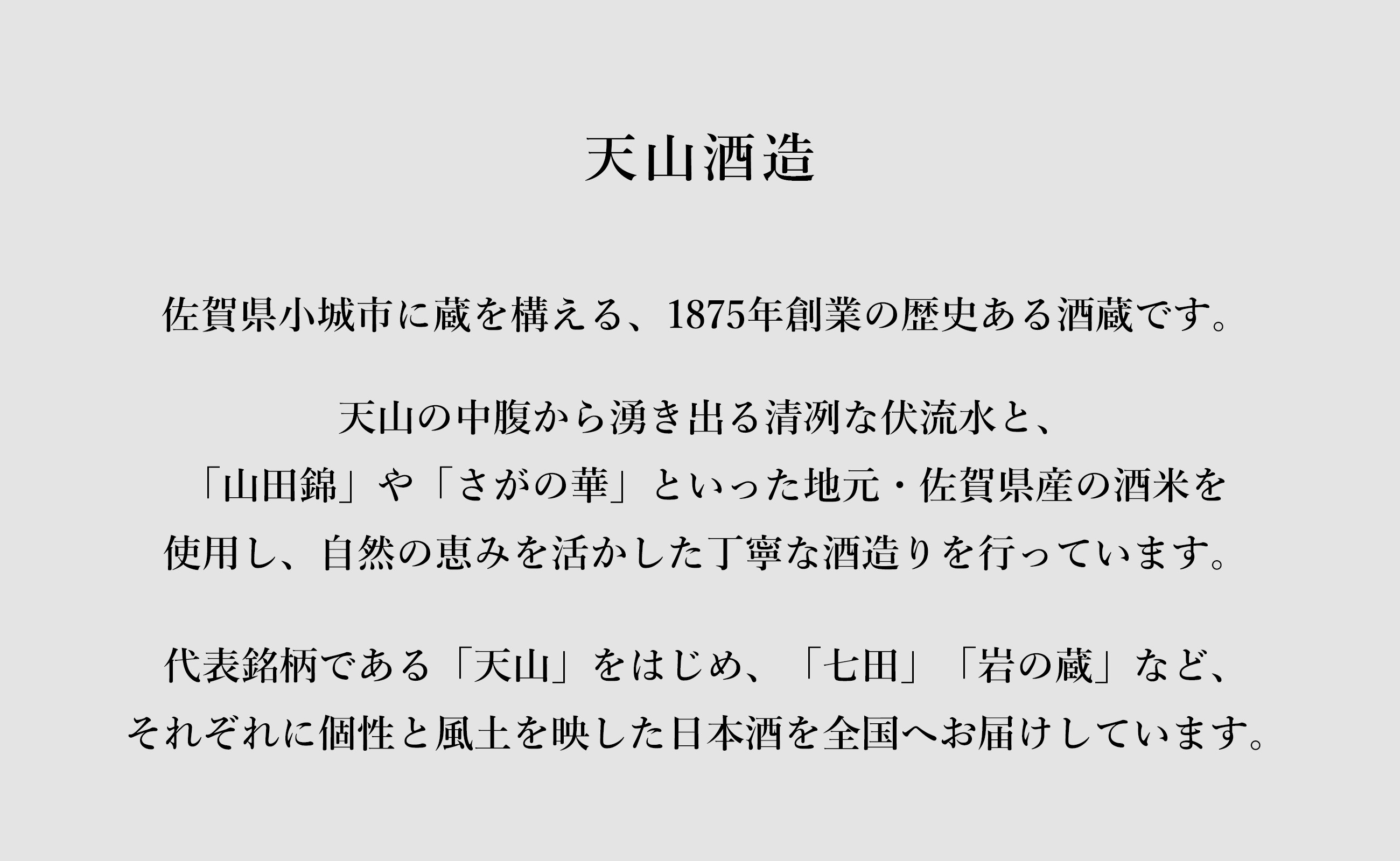 名醸天山酒造が醸す、穏やかで上品な香り「天山純米吟醸」