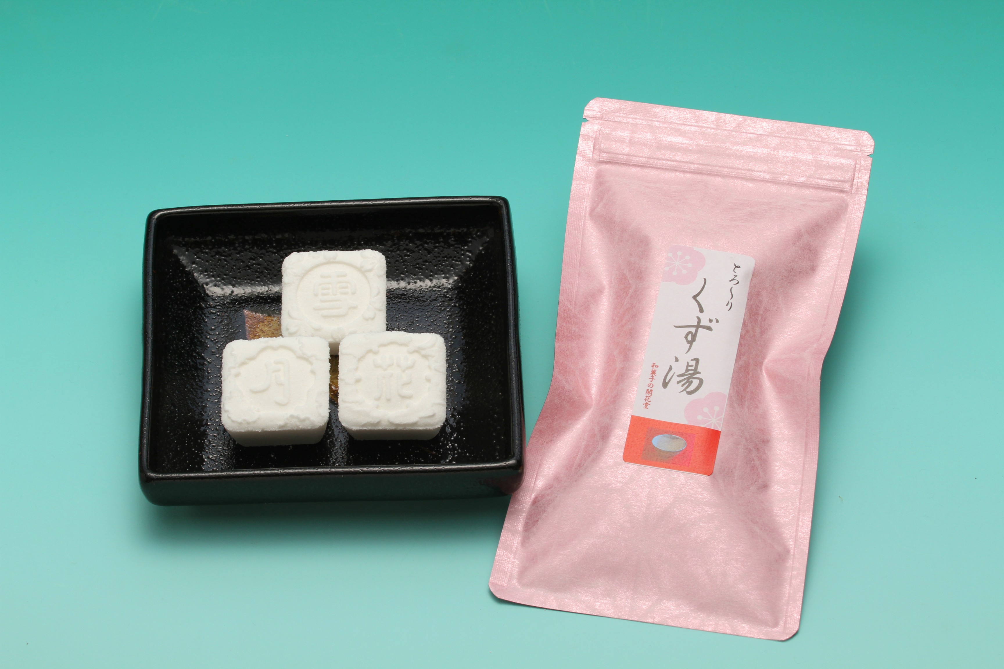 『雪』『月』『花』の模様と、四角に型取られた見た目にも美しい開花堂のくず湯です。 【セット】開花堂の『くず湯』と『抹茶くず湯』の詰合せ