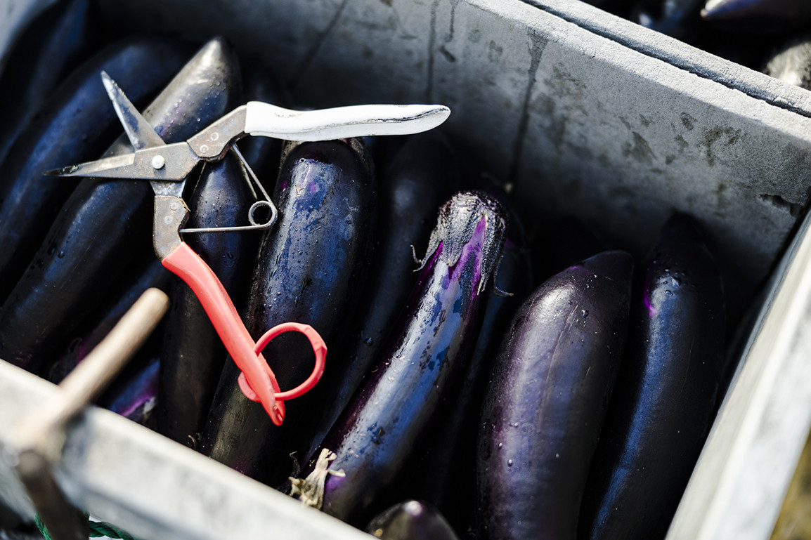 松尾さん家の「筑陽ナス」は、害虫の天敵を放ち育てられていますので消毒も少なく、有機肥料で育てた甘いナスです。